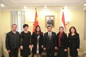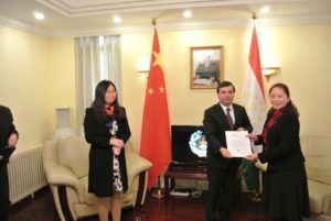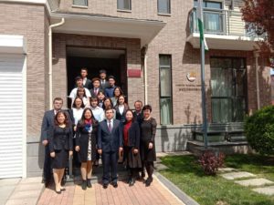 2018年4月11日上午,公司经理黄玫、书记李春丽、副经理戴桂菊、副经理何芳、闫洪波老师及17级复语班全体同学应邀参访塔吉克斯坦驻华使馆。