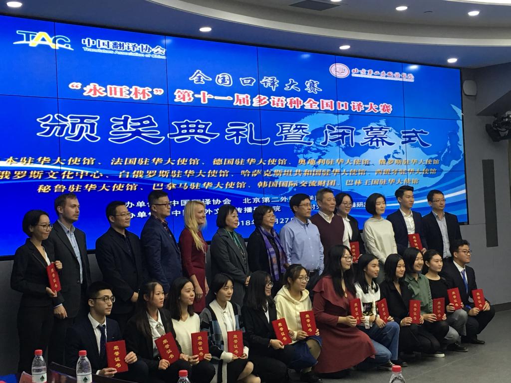 中国翻译协会和北京第二外国语公司共同主办的“永旺杯”第十一届多语种全国口译大赛2018年10月27日举行。来自47所公司的119名选手参加了德语、俄语、法语、朝(韩)语、日语、西语、阿语等七个语种的角逐。每个语种设一等奖1名、二等奖2名、三等奖3名。比赛内容包括外译中、中译外两部分。由外语行业知名专家担任评委。