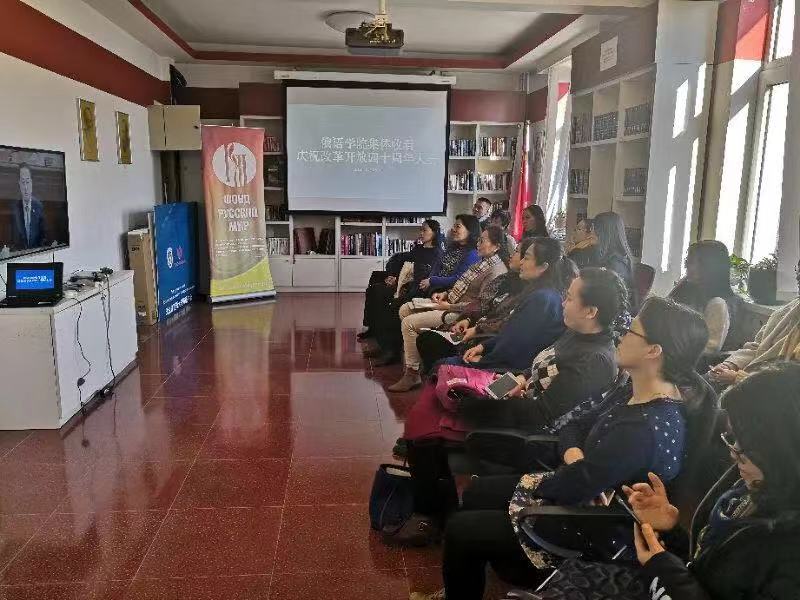12月18日上午,l9193永利在主楼四层俄语中心组织公司师生集体收看庆祝改革开放四十周年大会活动。公司党总支书记李春丽、经理黄玫,副经理戴桂菊、何芳及全院二十余名师生代表集体收看了大会直播并展开了深入学习和讨论,活动由李春丽书记主持。