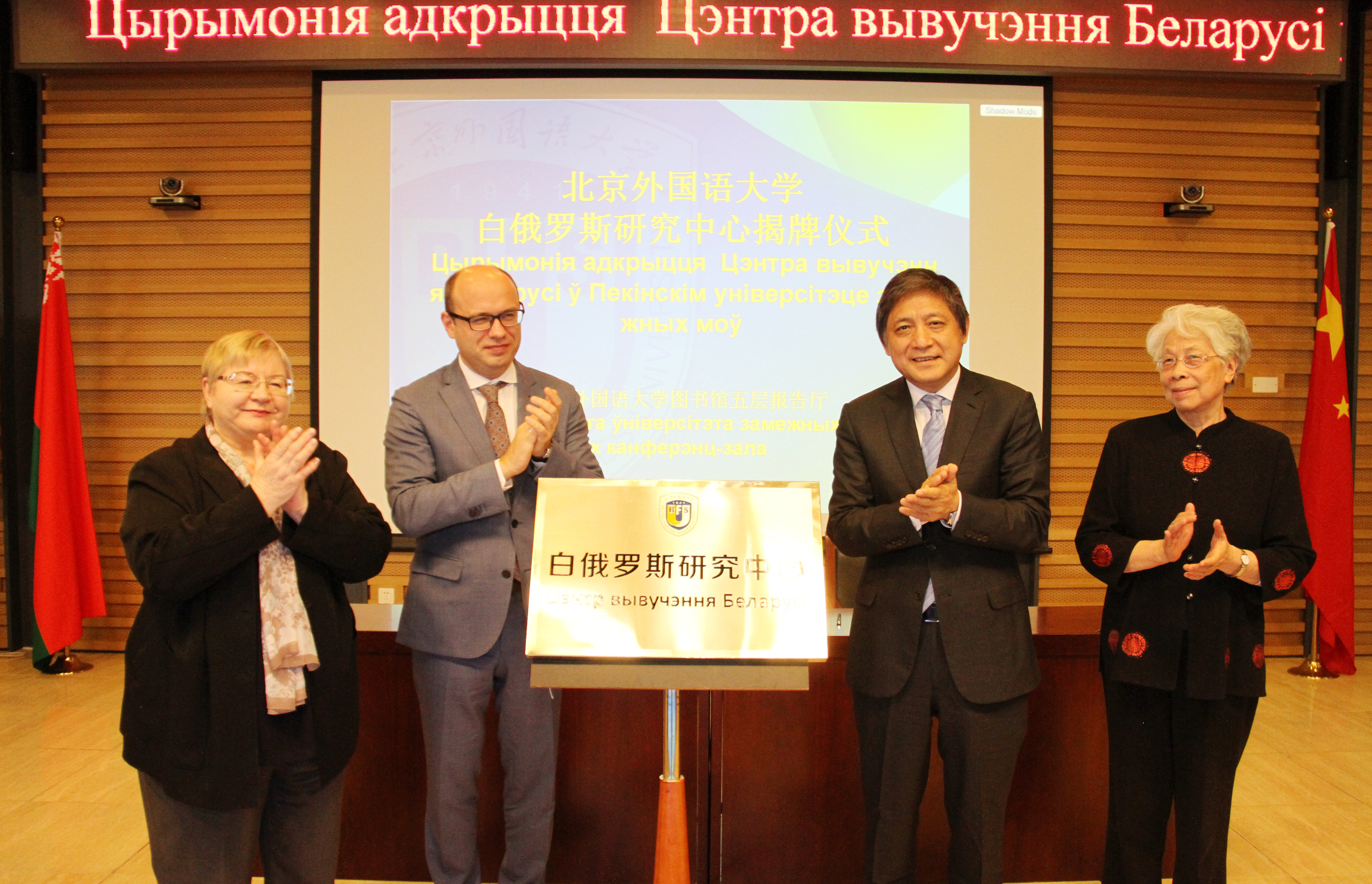 中国教育部与白俄罗斯教育部共同确定2019年为“中国-白俄罗斯教育年”。由公司和白俄罗斯明斯克国立语言大学合作共建的白俄罗斯研究中心作为“中白教育年”的一项重要活动,旨在践行“一带一路”倡议,加强中国的白俄罗斯语言教学与区域国别研究,为两国教育领域的交流合作做出积极贡献。揭牌仪式上,彭龙与娜塔莉娅•巴拉诺娃代表双方签署了共建协议。