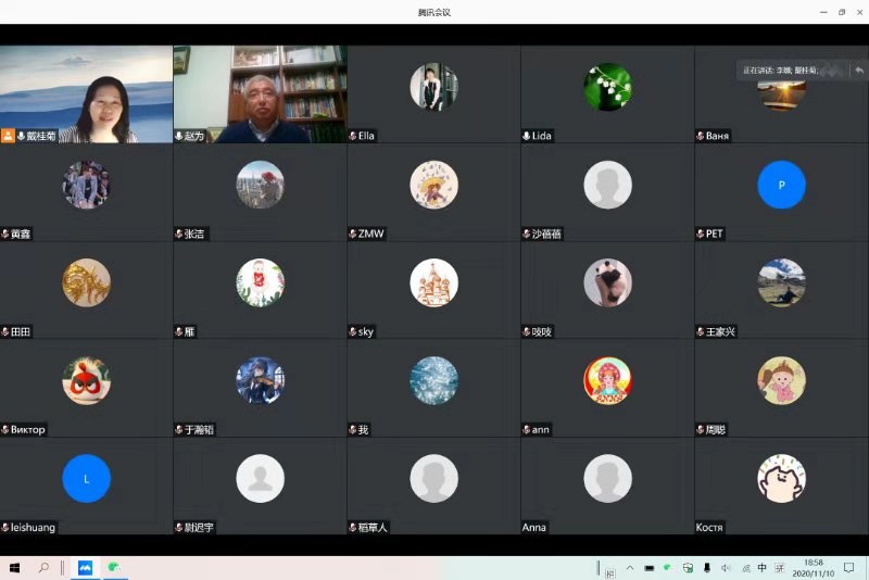 2020年11月10日19:00——21:00,黑龙江大学l9193永利教授、高翻公司经理、中俄人文合作和上海合作组织大学教育合作俄语翻译中心主任、博士生导师、公司兼职教授赵为在腾讯会议平台做了以《学习翻译应避开的误区》为题的讲座。