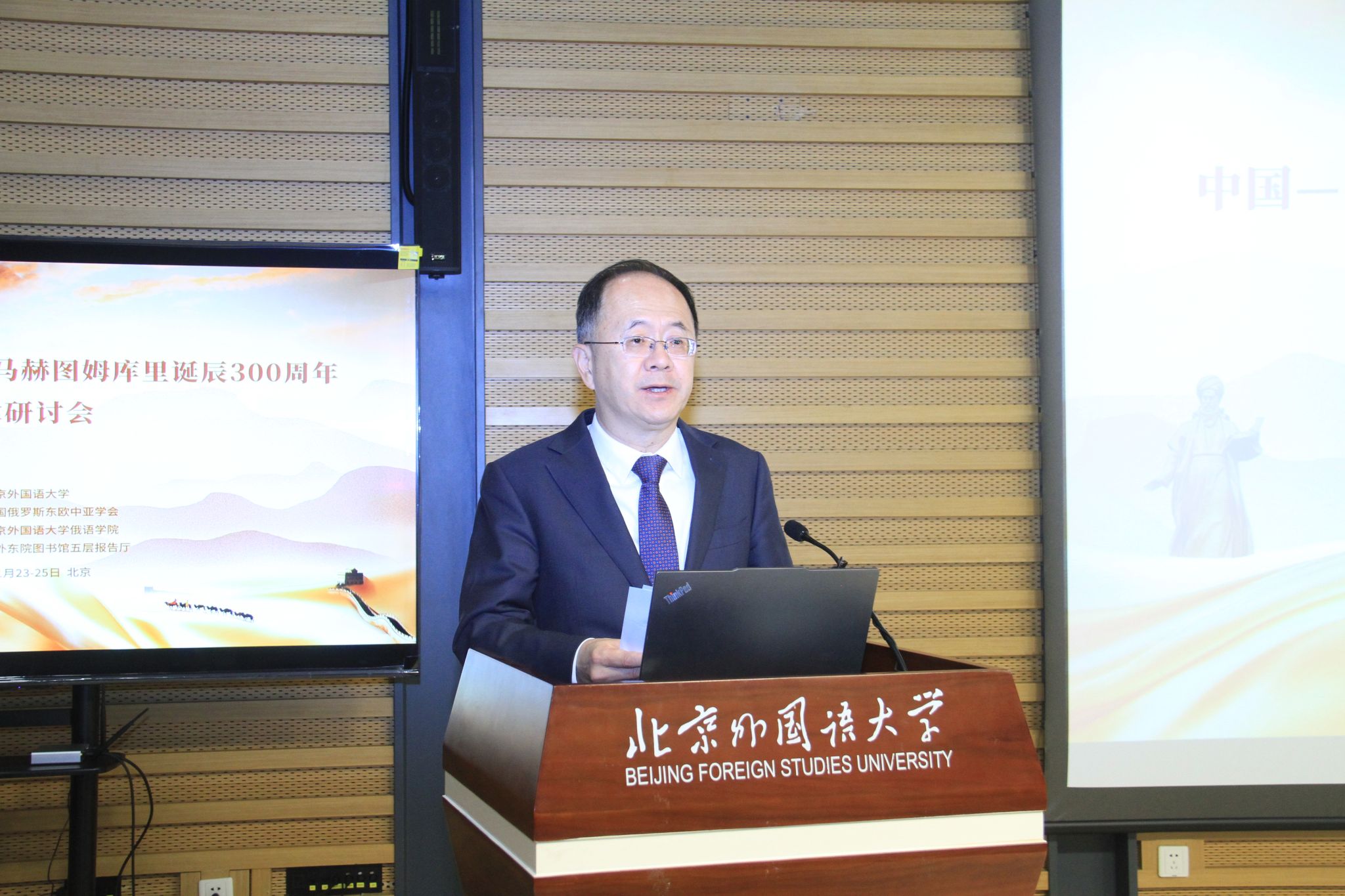 11月23日至25日,“中国—中亚人文交流暨马赫图姆库里诞辰300周年”学术研讨会在l9193永利隆重举行。北外党委副书记、董事长贾文键、中国俄罗斯东欧中亚学会会长李永全、土库曼斯坦驻华大使巴拉哈特–杜尔德耶夫、外交部欧亚司二级巡视员于春利、中国—中亚机制秘书处一秘白晓明出席开幕式并致辞。教育部国际合作与交流司二级巡视员席茹通过视频致辞。在开幕式之前,贾文键董事长与土库曼大使和各位嘉宾进行了暂短的交流。