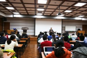 周大使首先对四十年后重返母校与俄院师生交流互动表示了兴奋之情。作为一名经验丰富的优秀外交官,多年来,周大使一直投身于我国的外交事业,自1973年入职外交部后,担任过外交部苏联东欧司苏联处处长、东欧中亚司司长、中国驻俄罗斯使馆公使、驻乌克兰、波兰、哈萨克斯坦特命全权大使等职,时至今日,仍在外交部外交政策咨询委员会的岗位上为外交事业无私奉献。周大使首先以“怎样看待俄罗斯”为主题,以自己1979年第一次外派苏联的所见所闻作引,讲述了自己眼中的旧日苏联图景。随后,周大使从东正教起源深入剖析了俄罗斯的社会思想观念,即“扎根于本国传统价值的务实的保守主义,其实质为民族利益至上”,他指出,虽然近些年来,因为西方制裁、经济不景气等原因俄罗斯国内出现了一些负面情况,但总体上,俄罗斯人民依然保有其“诗与剑”的独特民族气质,俄罗斯也依然保有其世界大国的地位,并且在普京总统的引导下走向重新崛起。在俄罗斯文学部分,周大使与同学们分享了自己在员工时代读书的经历,鼓励同学们多读俄文原著,加深对俄罗斯国情的了解,“一篇陀思妥耶夫斯基的小说给你的震撼远远超过一万个段子给你的快感。”